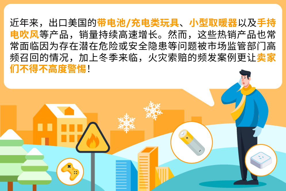 在此特別提醒賣家,需注意并檢查這類產(chǎn)品是否符合有關(guān)合規(guī)要求及合乎有關(guān)認證標(biāo)準(zhǔn),避免產(chǎn)品因合規(guī)不符合要求問題而被目的國市場監(jiān)管部門通報、召回、罰款,同時也建議您采用商業(yè)責(zé)任保險以保證出海生意安全。